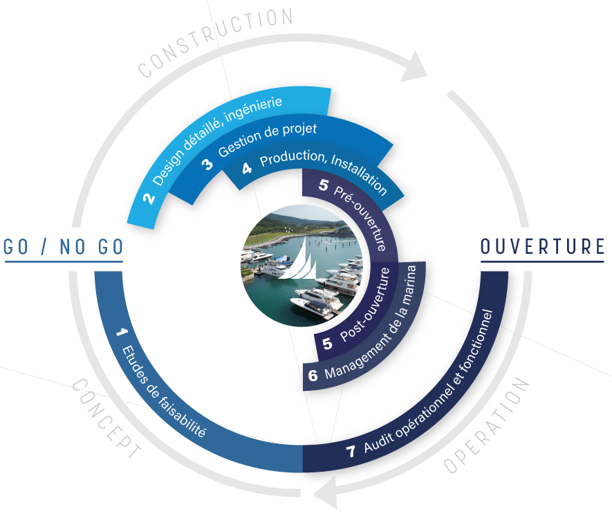 Pour garantir le meilleur retour sur investissement, MM&C s’associe à votre projet dès la définition du concept et jusqu’à l’exploitation et à la gestion du port, en passant par les différentes phases de la construction. Nous nouons un partenariat avec le client pour la définition, la mise en œuvre et l’exploitation de la stratégie sur la base d’une approche de partage des risques et des profits.