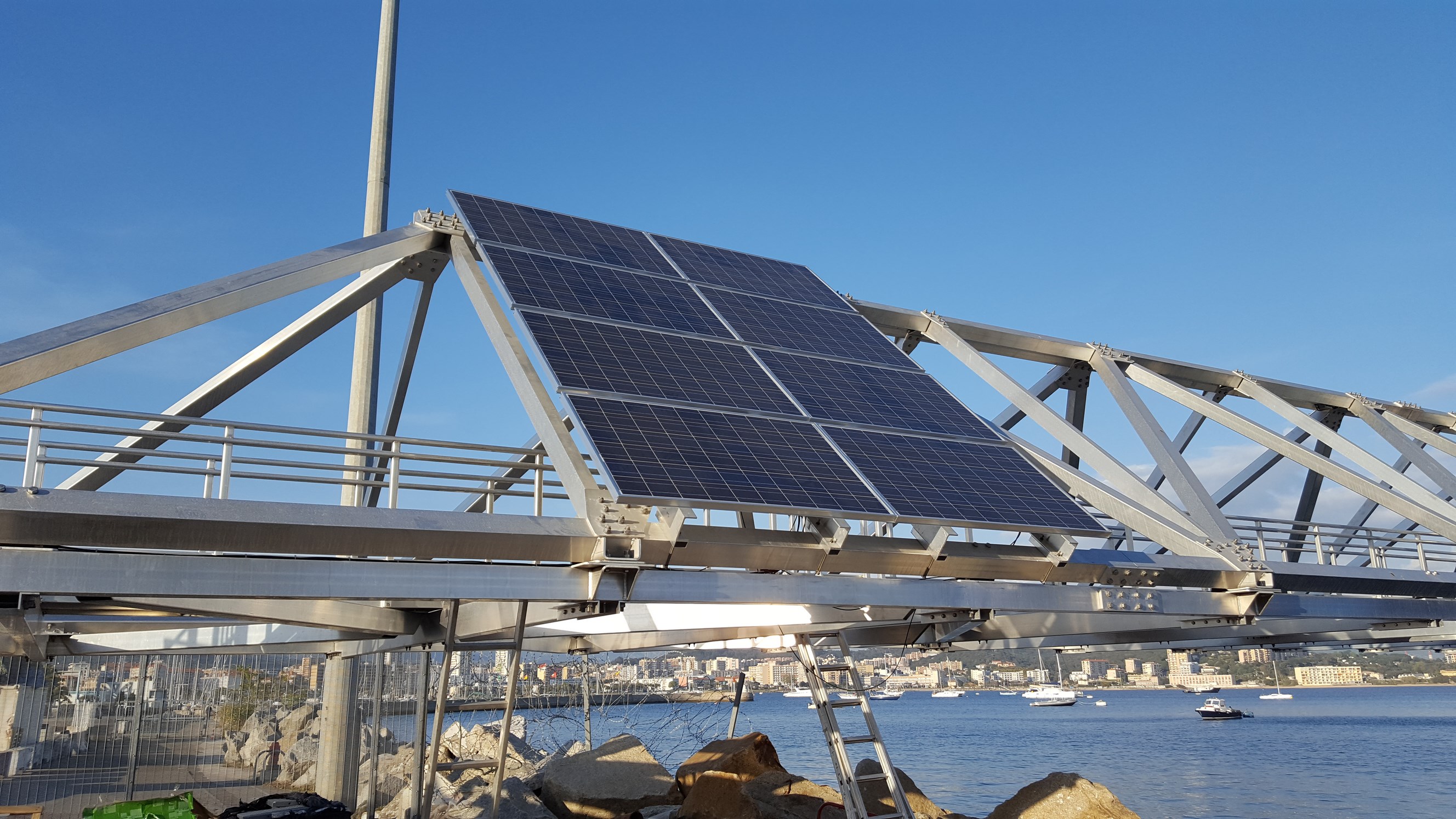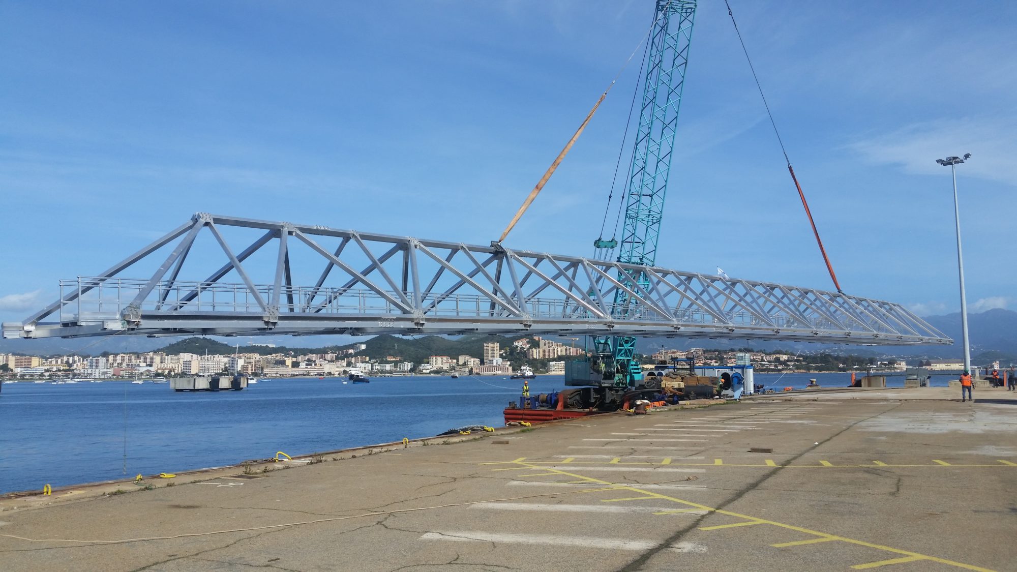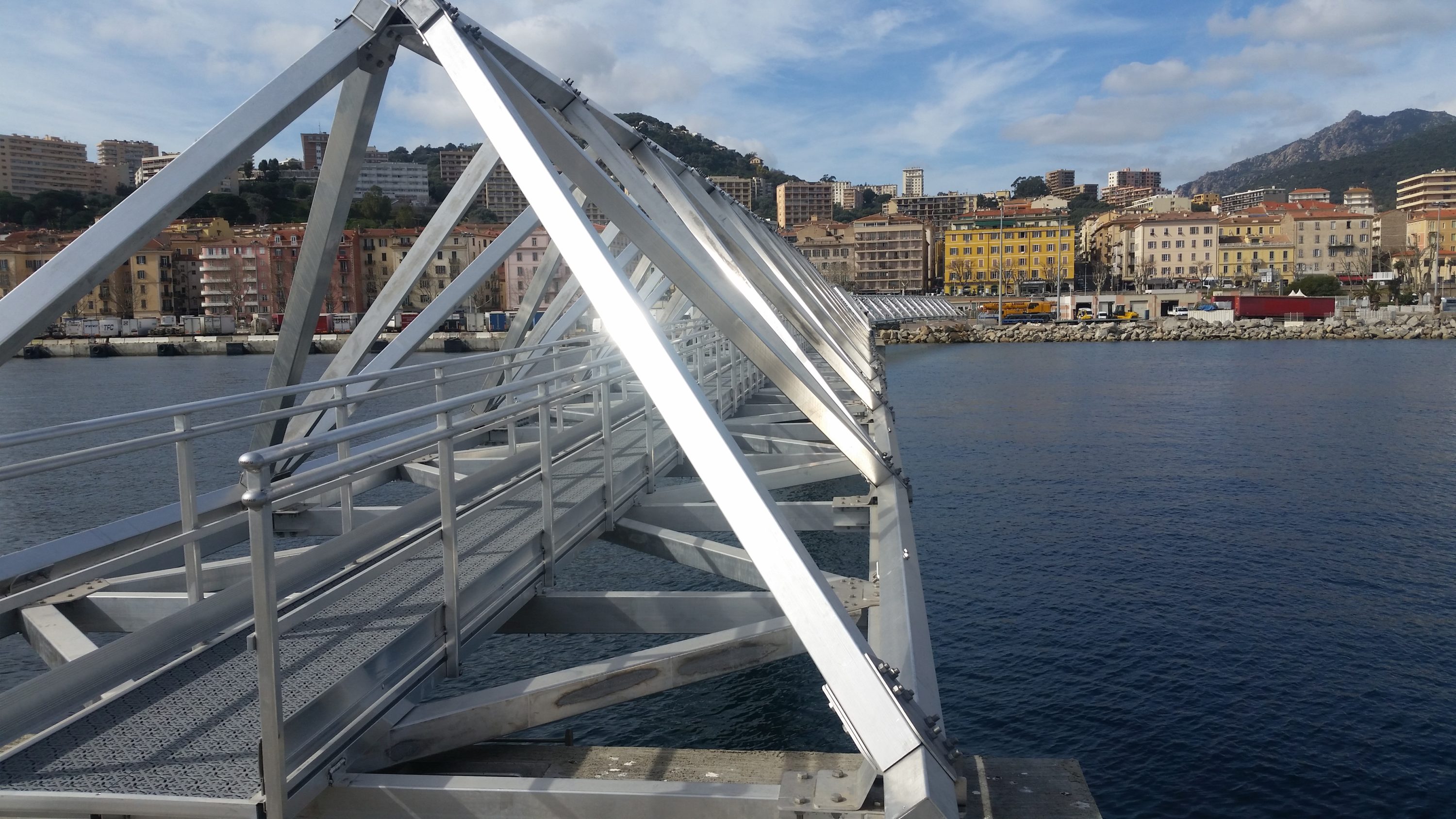 These gigantic bridges connect the three Ducs d’Albe[1] to the Margonajo jetty, which welcomes ferries, cruise and cargo ships, providing daily links to the continent. Intensive activity! The main objective of the developer CCI for Ajaccio and Southern Corsica was to secure and facilitate access to this jetty, built in 2011, whatever the weather conditions.