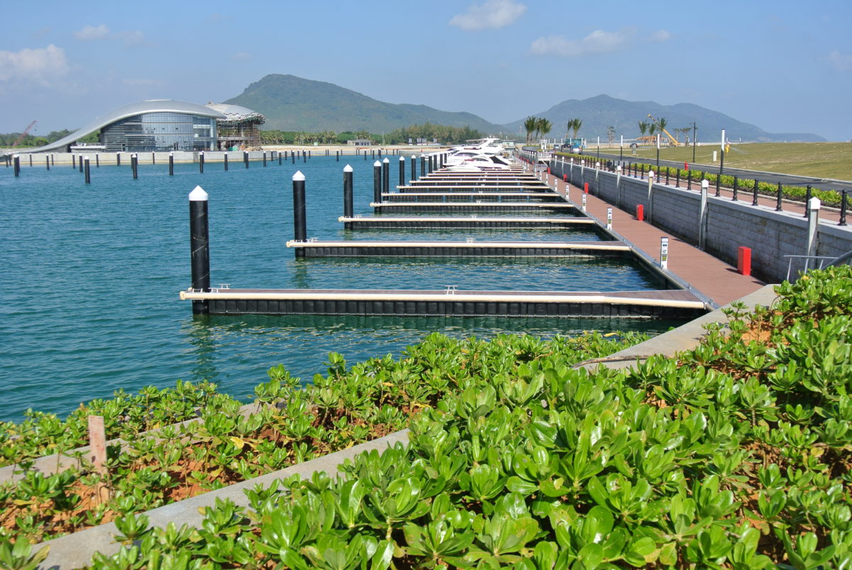 Una red de bloques de conexión es usada en todo el muelle, para vincular su longitud total. Con más de 20 toneladas de resistencia, estos bloques garantizan que el movimiento natural de los muelles en el agua, suceda prácticamente sin ruido, mientras que las conexiones y ensambles permanecen fuertes -una ingeniería creada para asegurar la duración de las instalaciones de la marina.