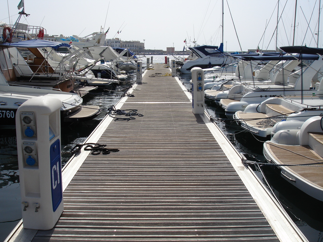 Los muelles flotantes tienen una cubierta de la madera tropical Massaranduba y los flotadores están especialmente diseñados para permitir conductos para agua y electricidad, con el fin de satisfacer las necesidades de los propietarios de mega yates.