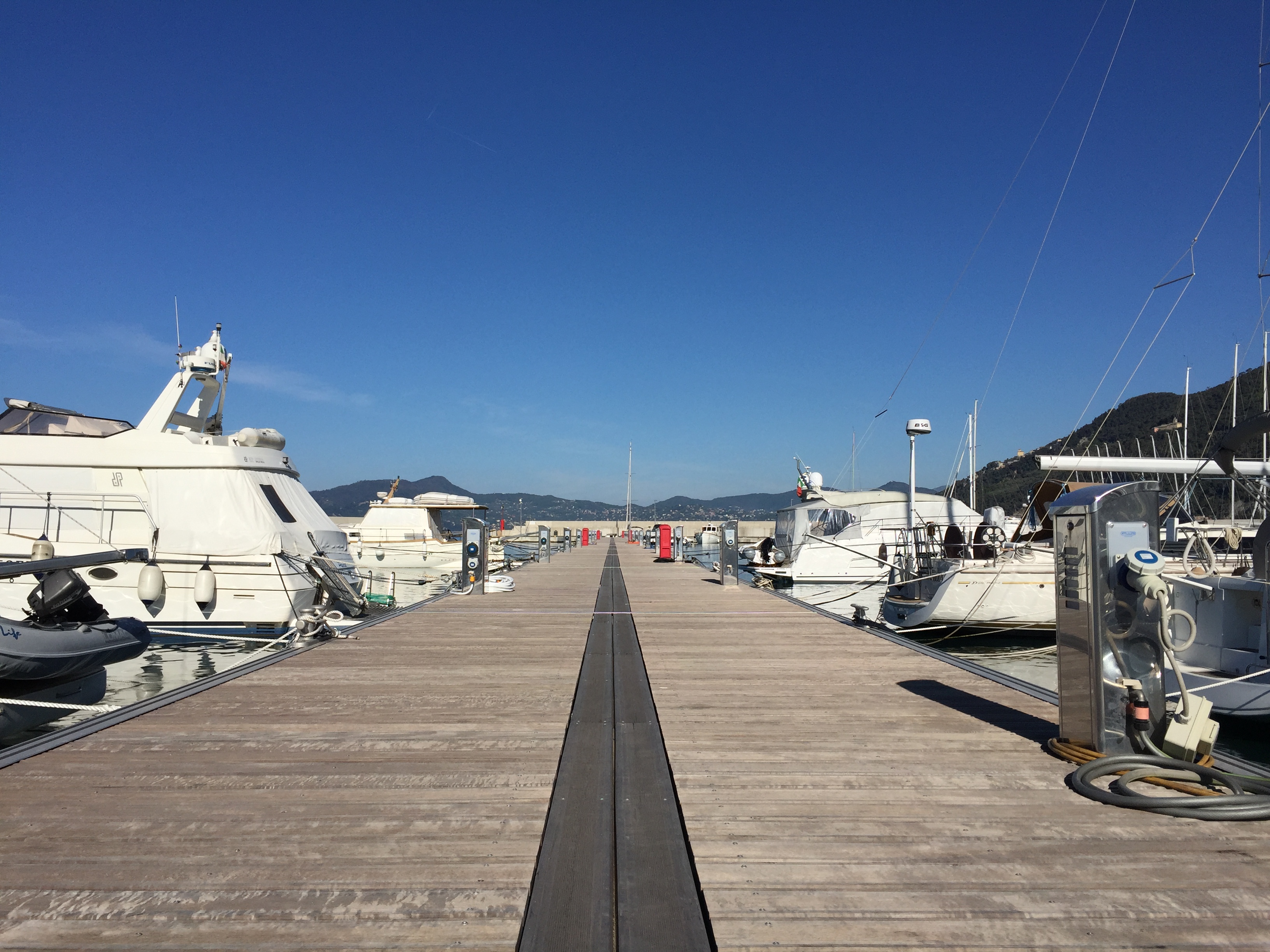 Design et construction d‘un ponton fixe en aluminium pour des bateaux de 25 mètres. Le projet se situe dans l’avant-port de la marina de Chiavari.